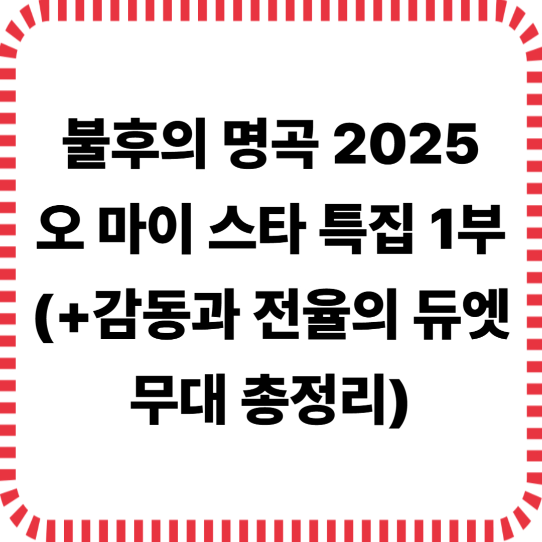 2025년 5월 17일 방송된 KBS2 ‘불후의 명곡’은 오랜 전통의 특집 시리즈인 ‘오 마이 스타’ 특집 1부로 꾸며졌습니다.