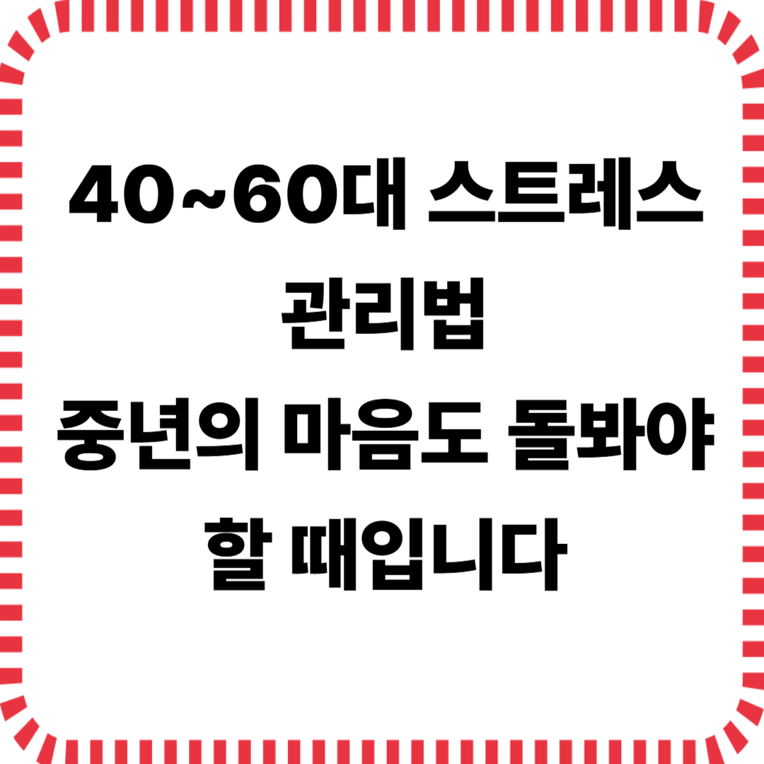 오늘은 40~60대 중년을 위한 스트레스 관리법과 정신 건강 유지 팁을 자세히 알려드릴게요.